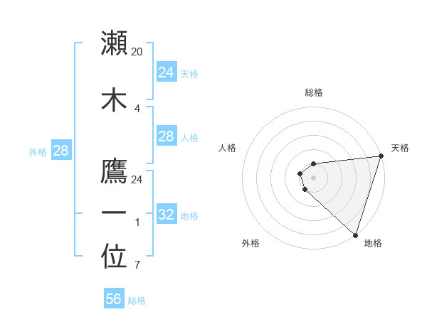 瀬木 鷹一位さんの天格は24画の5点!