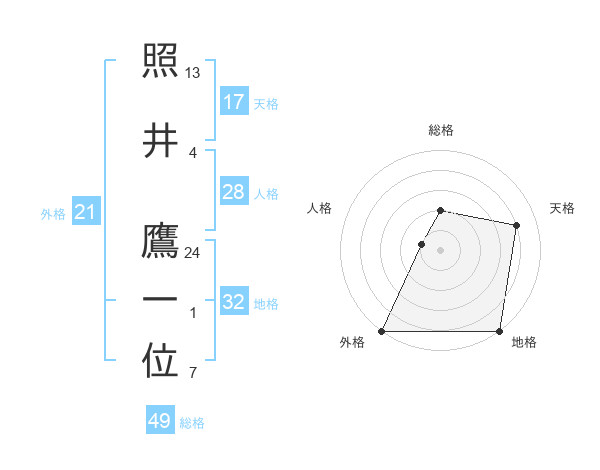 照井 鷹一位さんの天格は17画の4点!