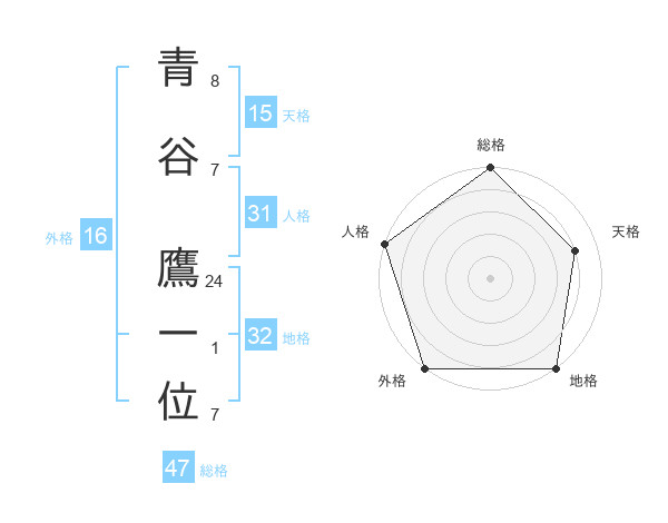 青谷 鷹一位さんの総格は47画の5点!