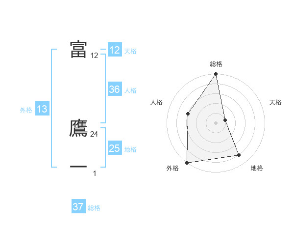 富 鷹一さんの総格は37画の5点!