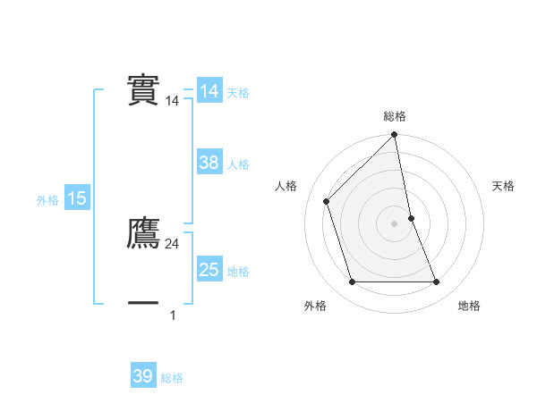 實 鷹一さんの総格は39画の5点!