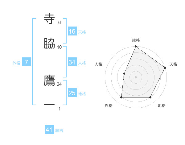 寺脇 鷹一さんを姓名の画数から五運を鑑定