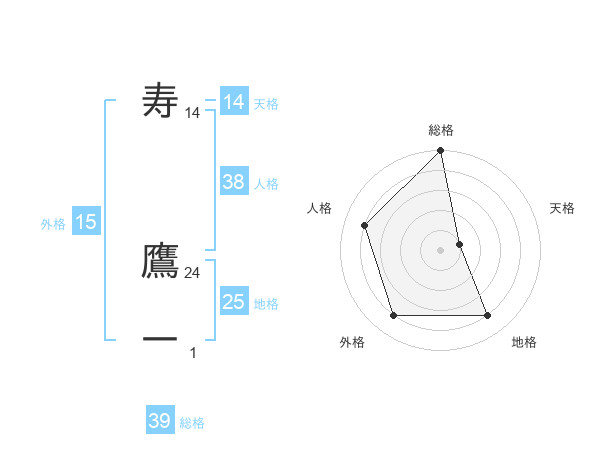 寿 鷹一さんの総格は39画の5点!