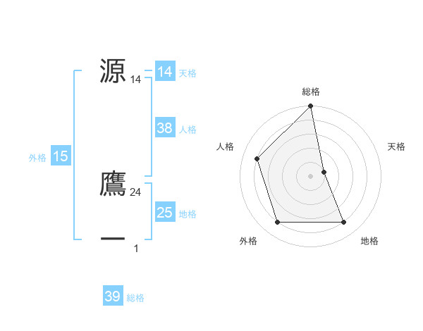 源 鷹一さんの総格は39画の5点!