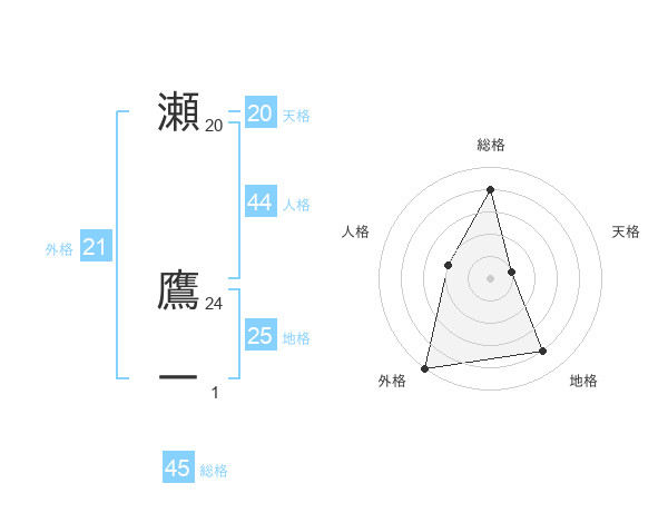 瀬 鷹一さんの総格は45画の4点!