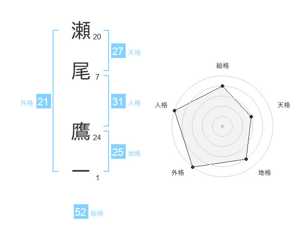 瀬尾 鷹一さんの総格は52画の4点!