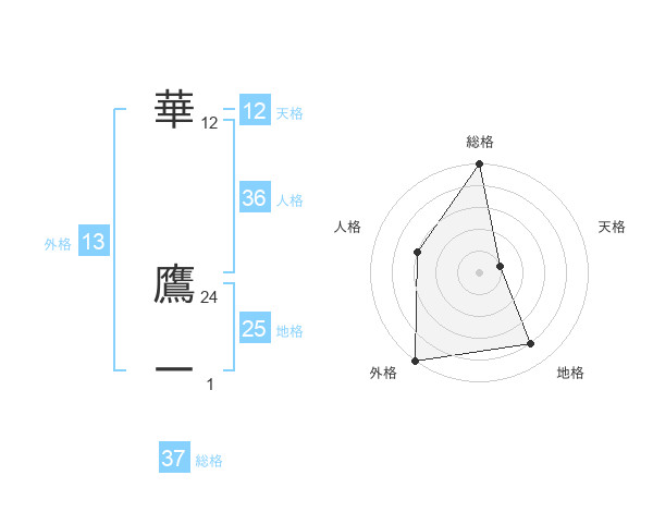 華 鷹一さんの総格は37画の5点!