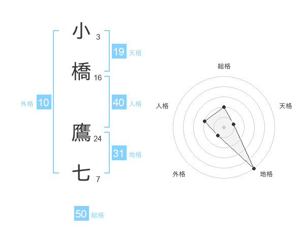小橋 鷹七さんを姓名の画数から五運を鑑定