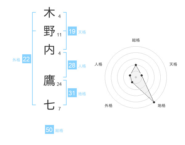 木野内 鷹七さんを姓名の画数から五運を鑑定