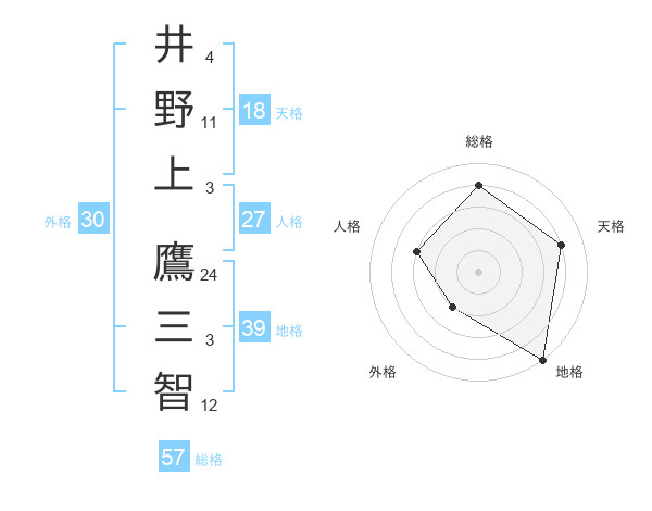 井野上 鷹三智さんを姓名の画数から五運を鑑定