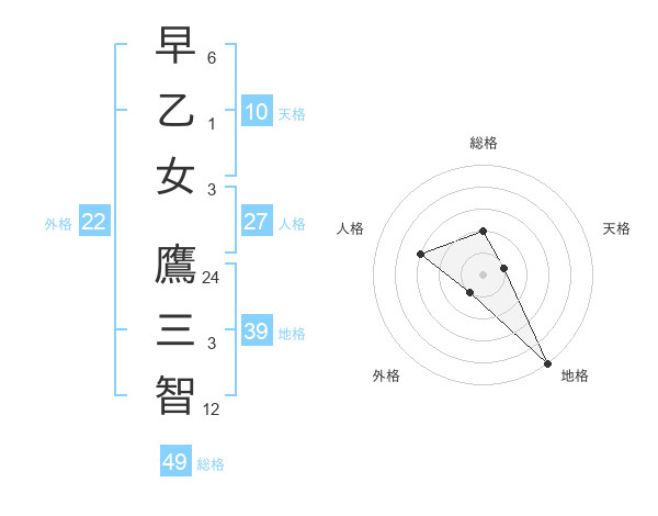 早乙女 鷹三智さんを姓名の画数から五運を鑑定