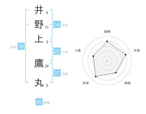 井野上 鷹丸さんを姓名の画数から五運を鑑定