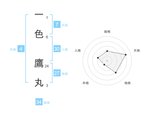 一色 鷹丸さんの総格は34画の2点!