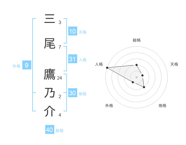 三尾 鷹乃介さんの総格は40画の2点!