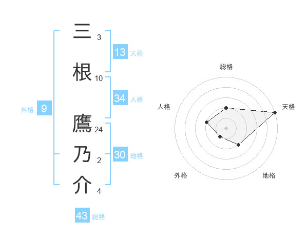 三根 鷹乃介さんを姓名の画数から五運を鑑定