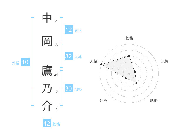 中岡 鷹乃介さんを姓名の画数から五運を鑑定
