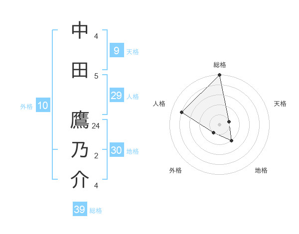 中田 鷹乃介さんの総格は39画の5点!