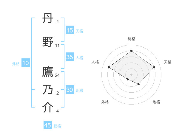 丹野 鷹乃介さんの総格は45画の4点!