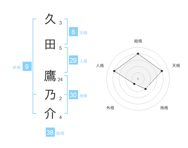 久田 鷹乃介さんを姓名の画数から五運を鑑定