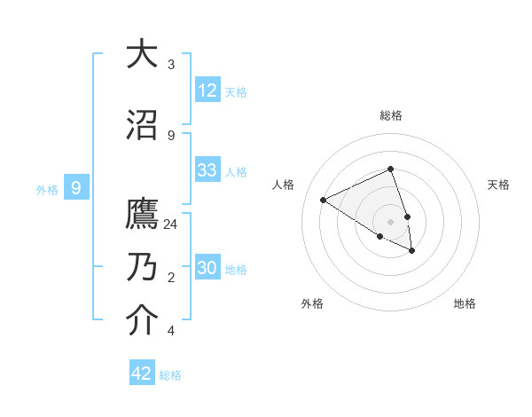 大沼 鷹乃介さんを姓名の画数から五運を鑑定