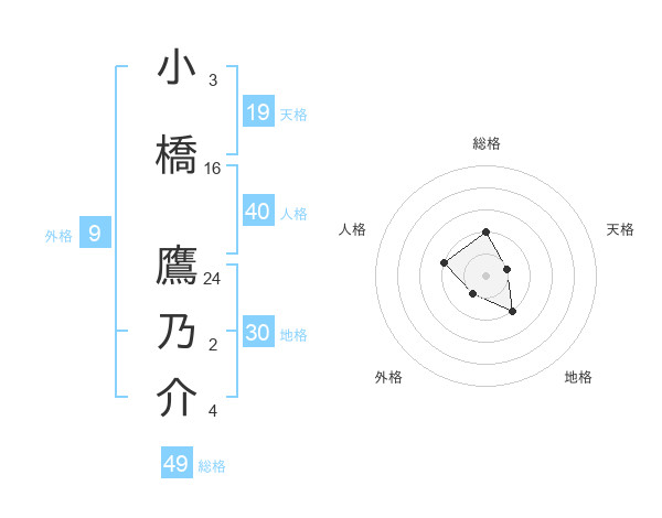 小橋 鷹乃介さんを姓名の画数から五運を鑑定