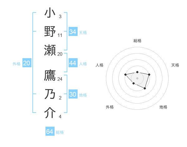 小野瀬 鷹乃介さんの総格は64画の1点!