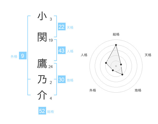 小関 鷹乃介さんの総格は52画の4点!
