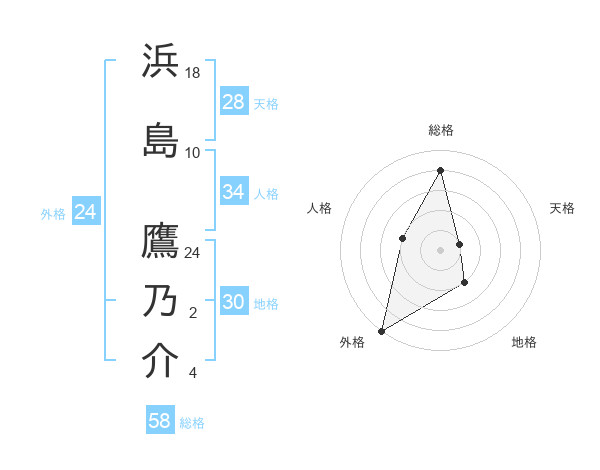 浜島 鷹乃介さんの総格は58画の4点