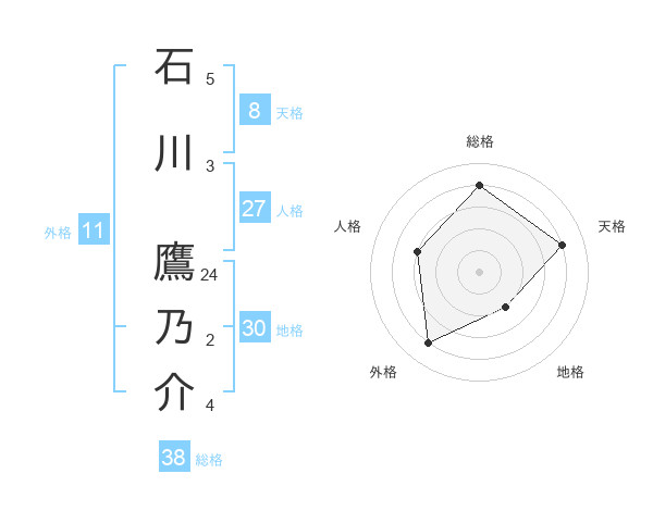 石川 鷹乃介さんの総格は38画の4点