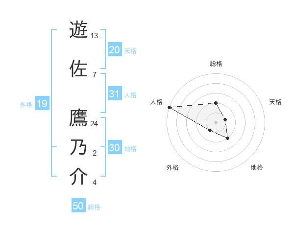 遊佐 鷹乃介さんを姓名の画数から五運を鑑定