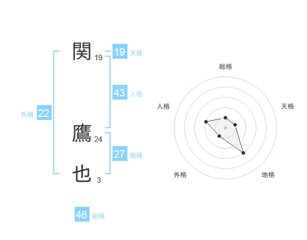 関 鷹也さんの天格は19画の1点!