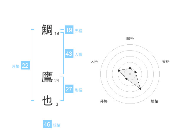 鯛 鷹也さんを姓名の画数から五運を鑑定