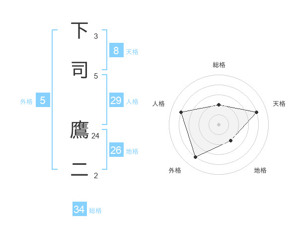 下司 鷹二さんの天格は8画の4点!