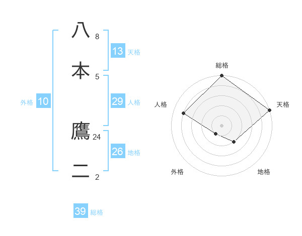 八本 鷹二さんの総格は39画の5点!