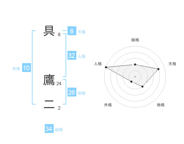 具 鷹二さんの総格は34画の2点!