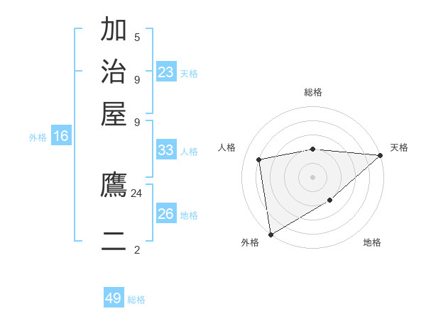 加治屋 鷹二さんを姓名の画数から五運を鑑定