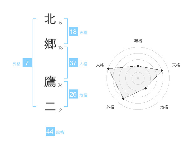 北郷 鷹二さんを姓名の画数から五運を鑑定