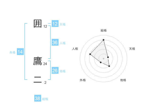 囲 鷹二さんを姓名の画数から五運を鑑定