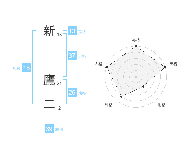 新 鷹二さんの総格は39画の5点!