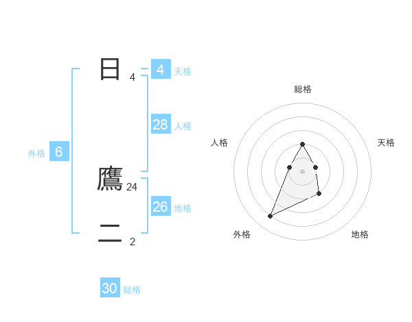 日 鷹二さんの総格は30画の2点!
