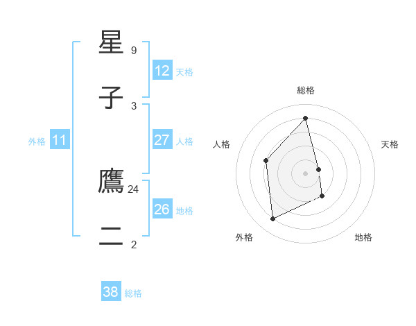 星子 鷹二さんの総格は38画の4点!