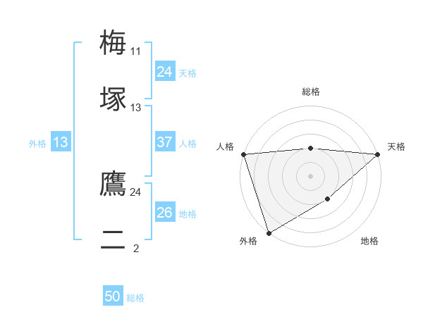 梅塚 鷹二さんを姓名の画数から五運を鑑定
