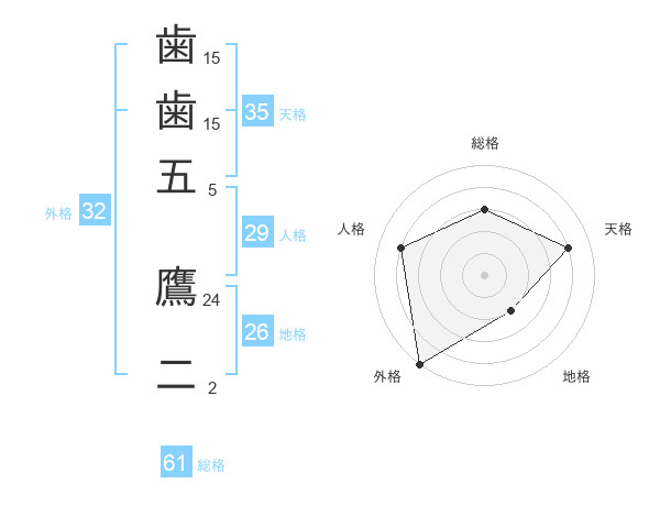 歯歯五 鷹二さんを姓名の画数から五運を鑑定
