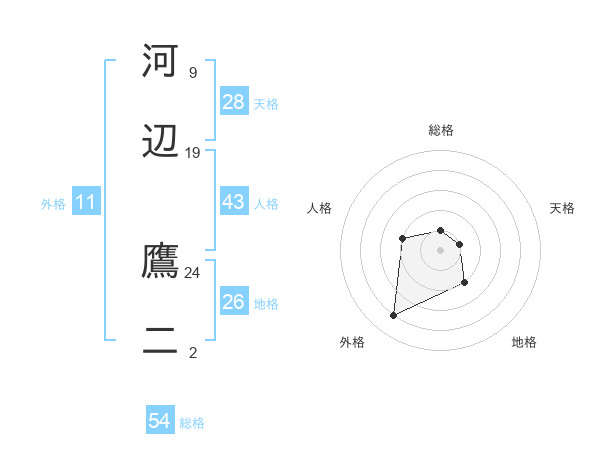 河辺 鷹二さんの総格は54画の1点!