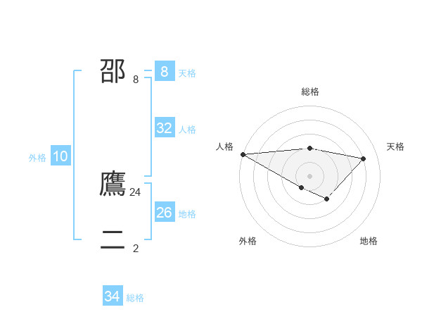 邵 鷹二さんを姓名の画数から五運を鑑定
