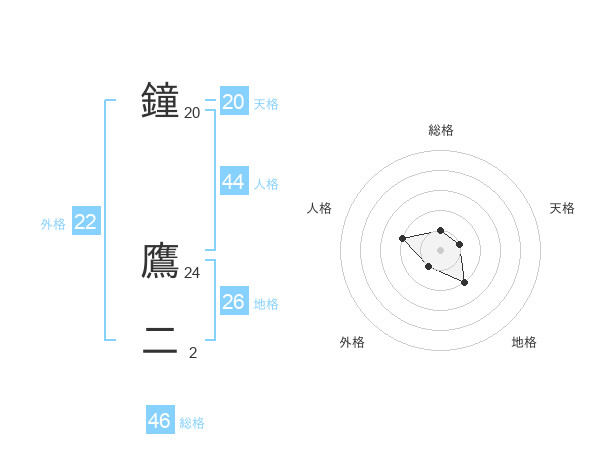 鐘 鷹二さんを姓名の画数から五運を鑑定