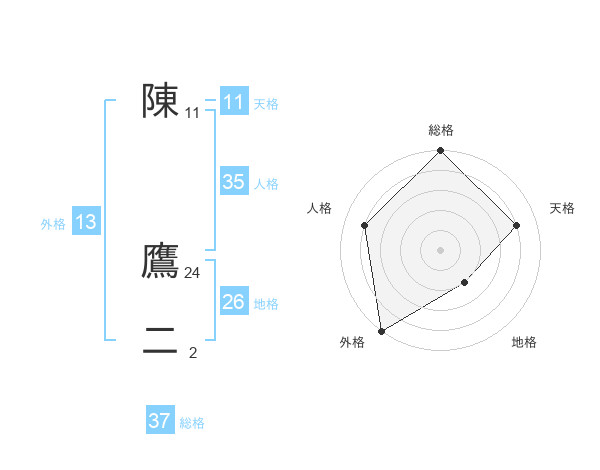 陳 鷹二さんの総格は37画の5点!