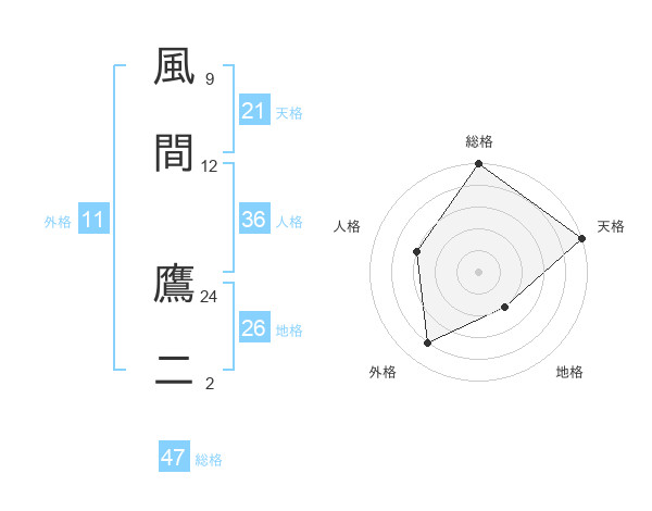 風間 鷹二さんを姓名の画数から五運を鑑定
