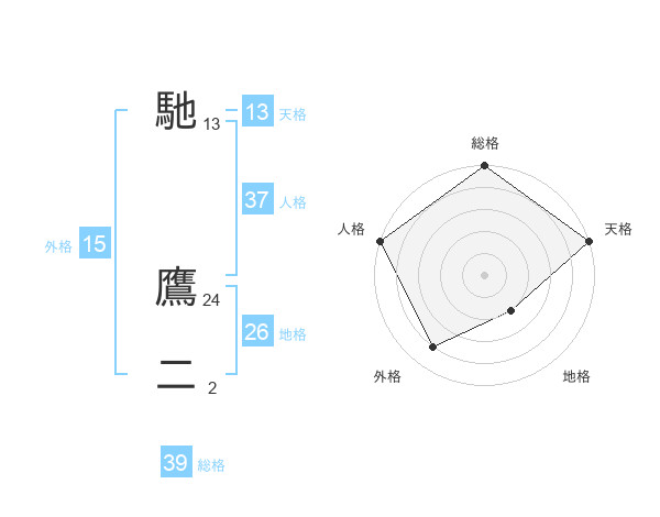 馳 鷹二さんを姓名の画数から五運を鑑定