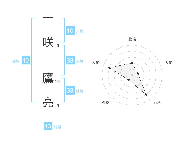 一咲 鷹亮さんを姓名の画数から五運を鑑定